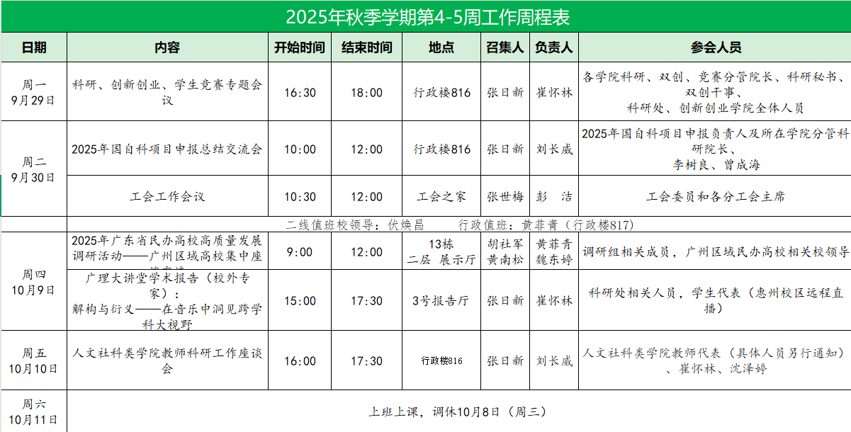 2025-2026学年第一学期通识教育学院第4-5周工作表