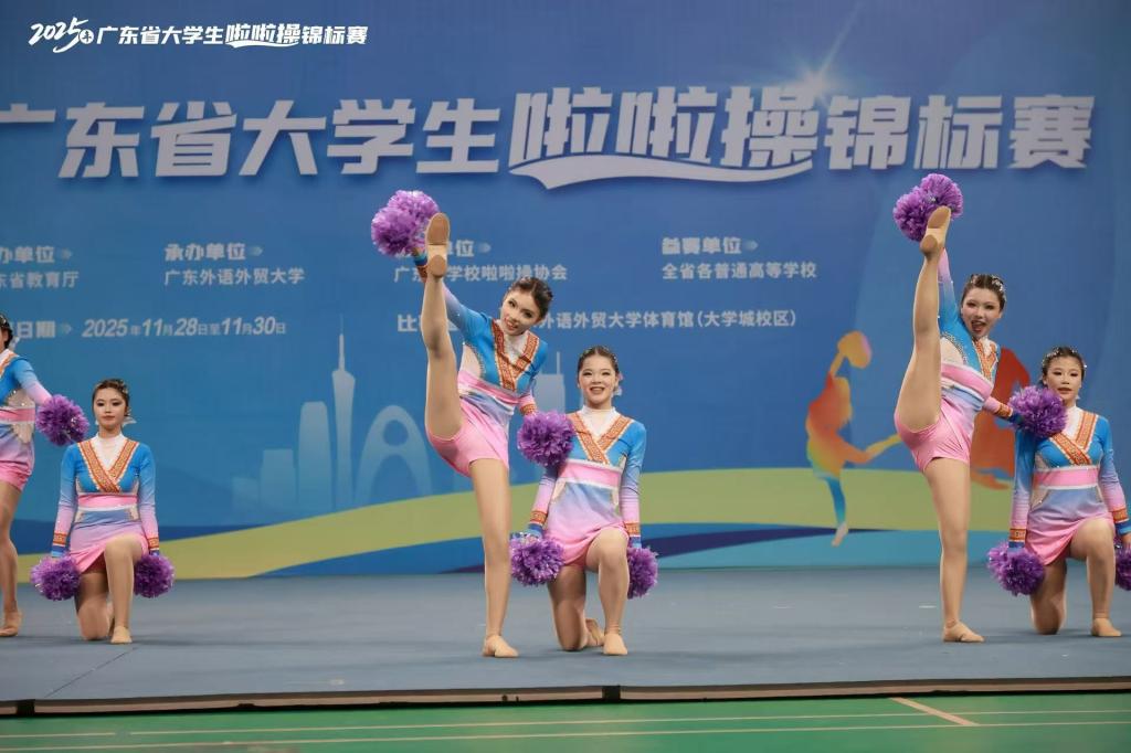 11月28日,广东省教育厅主办,广东外语外贸大学承办,广东省学校啦啦操协会协办的2025年广东省大学生啦啦操锦标赛在广东外语外贸大学体育馆(大学城校区)拉开帷幕。来自全省54所高校,2306名运动员参与角逐。在领队蔡煜浩和教练曾沁颖带领下,广州理工学院啦啦操队员在全省高校面前展现了卓越的风采。其中,由郭芷瑜等同学组成的花球啦啦操队表现尤为抢眼,以绝对优势勇夺花球啦啦操规定套初a甲组第一名。同时,花球啦啦操规定套初b甲组也荣获了第五名的优异成绩。此外,由我校带来的双人街舞表演惊艳全场,拿下全省第七名的佳绩,共同为学校赢得了荣誉。