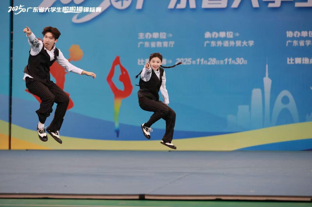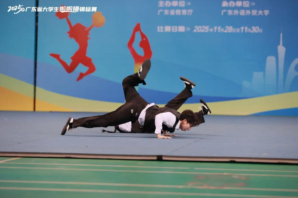 本次大赛云集了全省各高校的顶尖队伍,竞争异常激烈。赛场上,广州理工学院啦啦队的队员们以整齐划一的动作,编排创意新颖,翻腾和跳跃动作精准无误、衔接流畅,配合着动感十足的音乐,将啦啦操运动的活力、团队协作的精神与青春无限的风采展现得淋漓尽致。双人街舞那充满张力与节奏感的舞步,展现了街舞的自由与力量。队员们脸上始终洋溢着自信灿烂的笑容,将力与美完美融合,充分展现了广州理工学子朝气蓬勃、追求卓越的精神风貌。