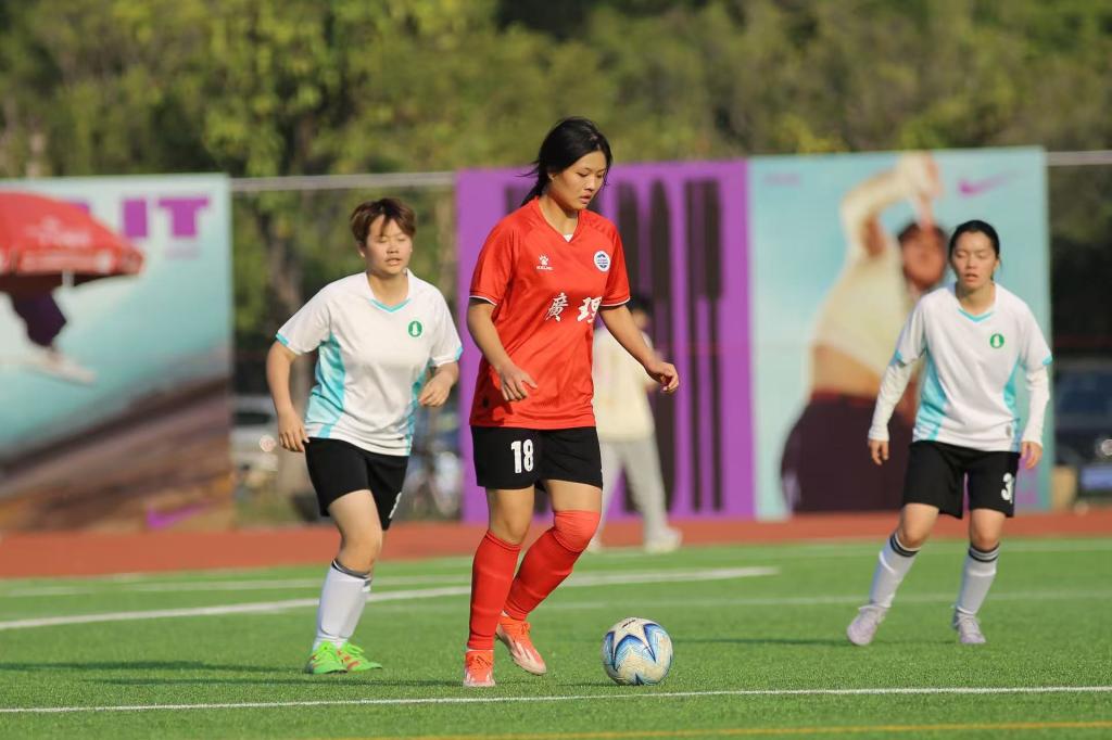 比赛尾声,我方依旧保持高昂斗志,上演精彩反击进球。对方后场定位球开出高远球,18号江雪芹挺身而出,抢先迎球卸力,随后带球全速向前冲刺,凭借出色的个人能力撕开对方防线,一记势大力沉的贴地抽射,将比分最终锁定为4:1!